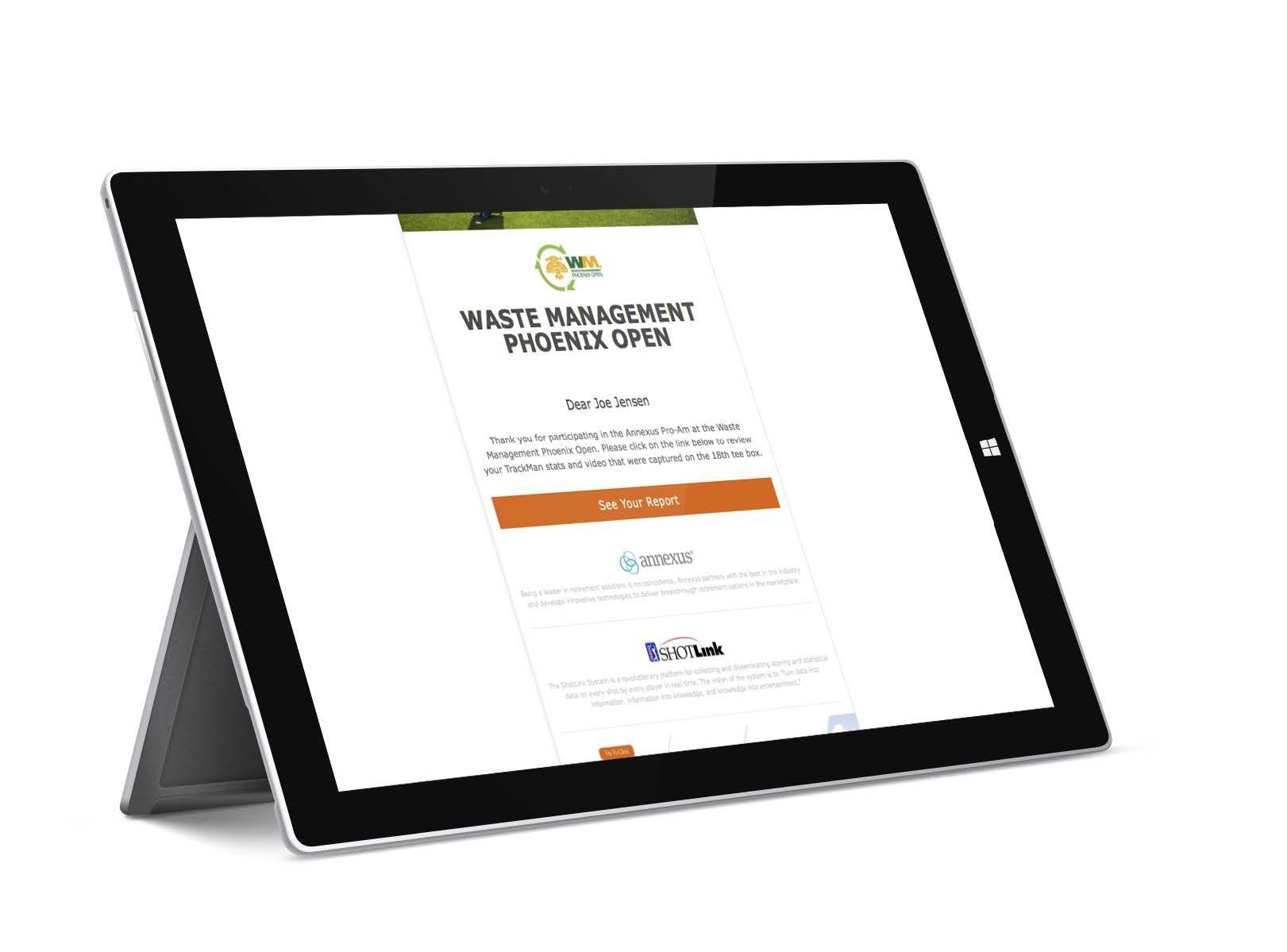 After the golf tournament is completed, each participant will receive a shareable, online report containing video and data recordings, leaderboards, and explanatory graphics.